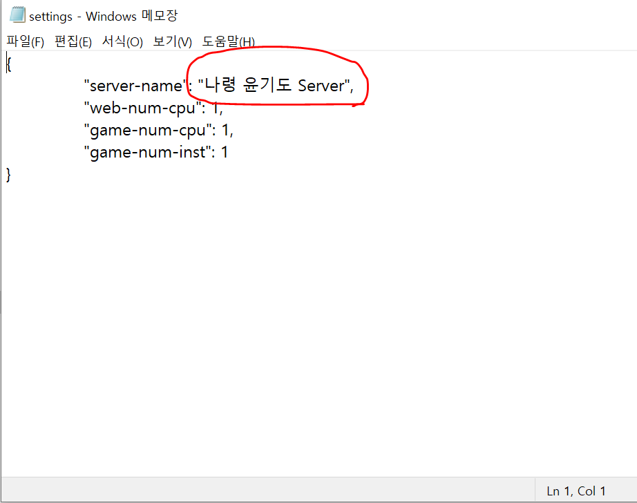 1번 settings 파일 오른마우스 클릭 메모장을 열어