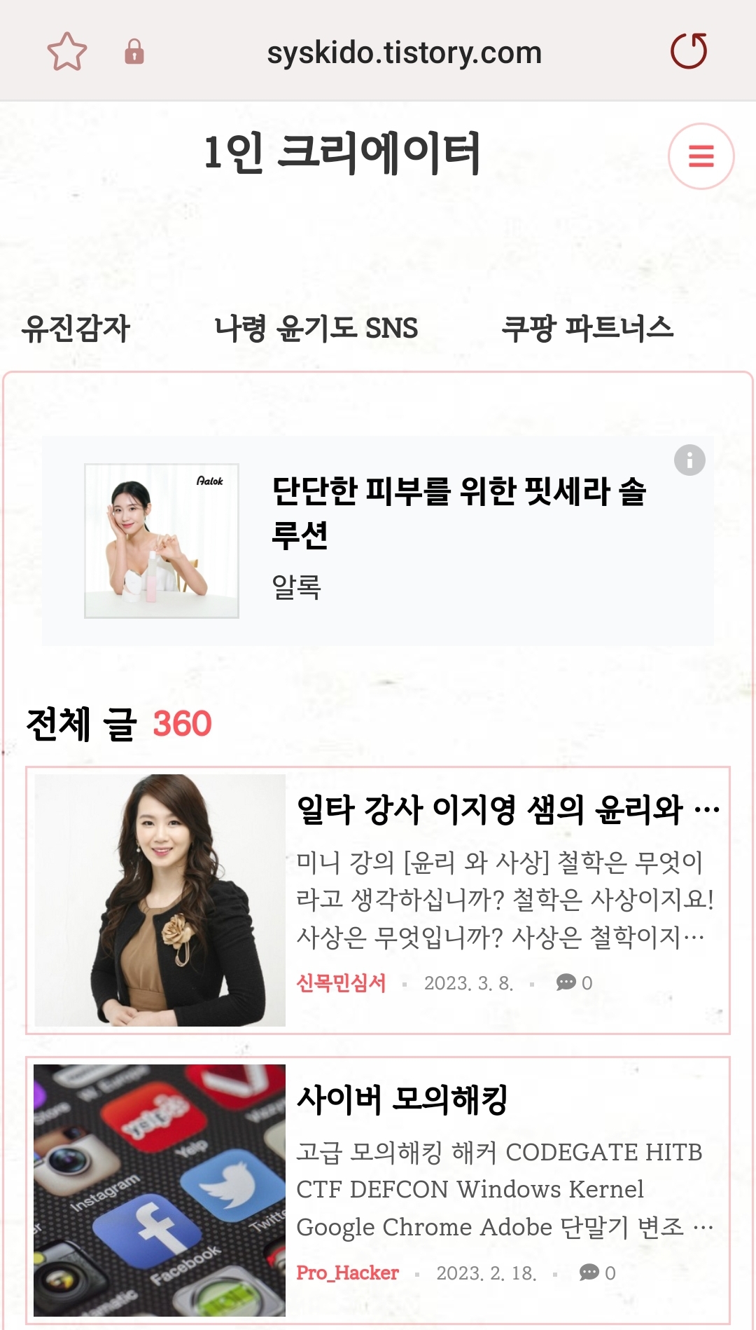 20년 전부터 나름대로 SNS 활동을 왕성하게 해왔다. 나름대로 운영을 배우면서 시간적으로 많은 시간들을 블로그에 최선을 최선을 다했다.