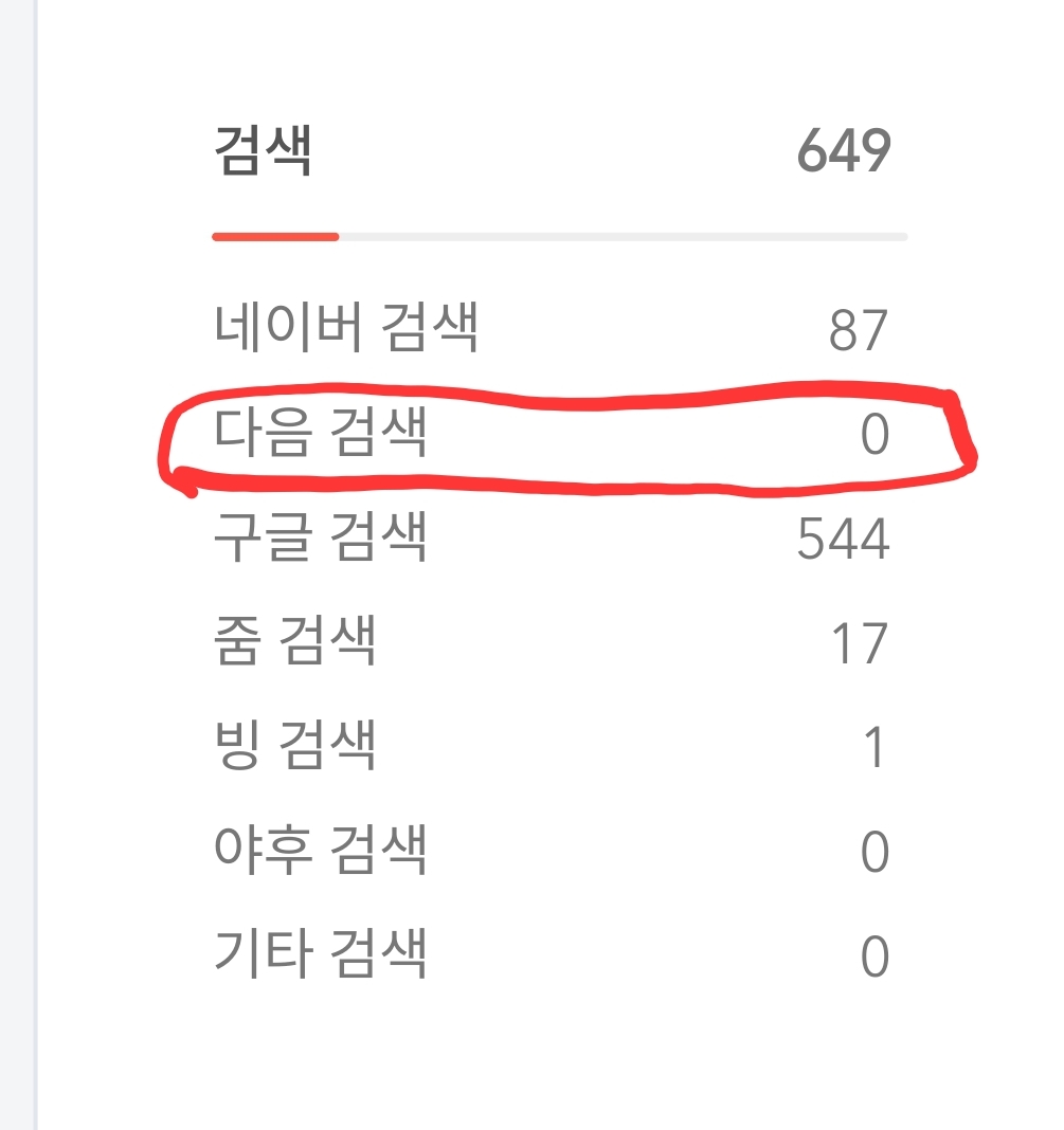 참 처음시작당시에는 정말 열악한 환경속에서 시작을 했습니다. 그렇게 그당시에 최고의 검색율을 자랑했던 다음[Daum]에서는 검색 🔎 율 0% 를 기록하면서 시작을 했습니다.