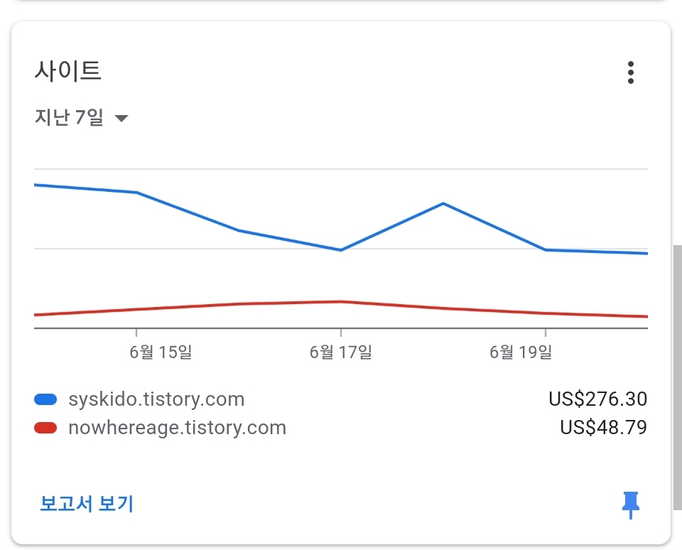 | 구글 애드센스 6월 보고서: 수익 189% 증가 승승장구하고 있습니다. (0) | 2022.07.19 |