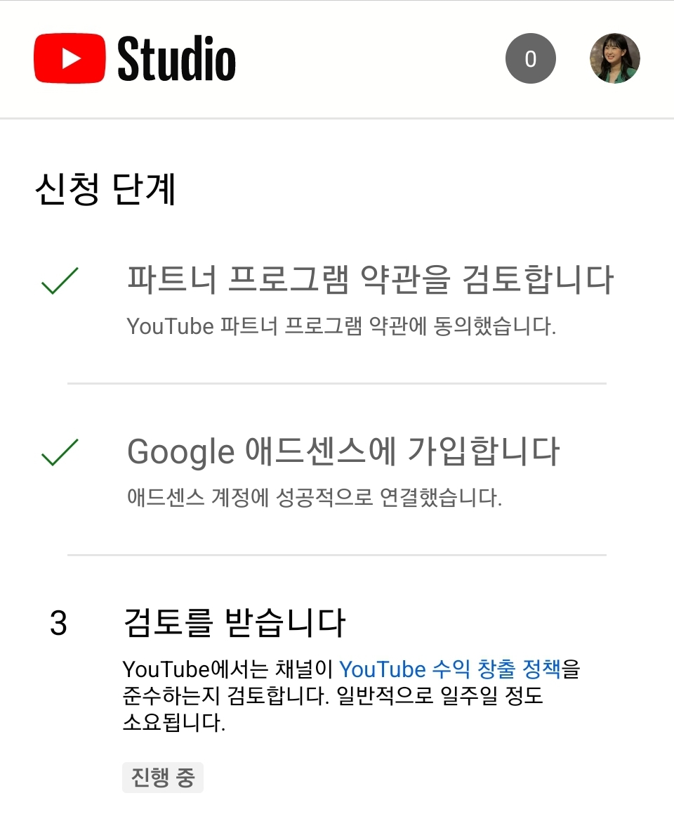 아무튼 유진 공주님의 힘으로 유튜브 파트너 프로그램까지 가입을 할 수 있었습니다. .최종적으로 승인 결과는 일주일 안으로 나올 예정입니다 .
