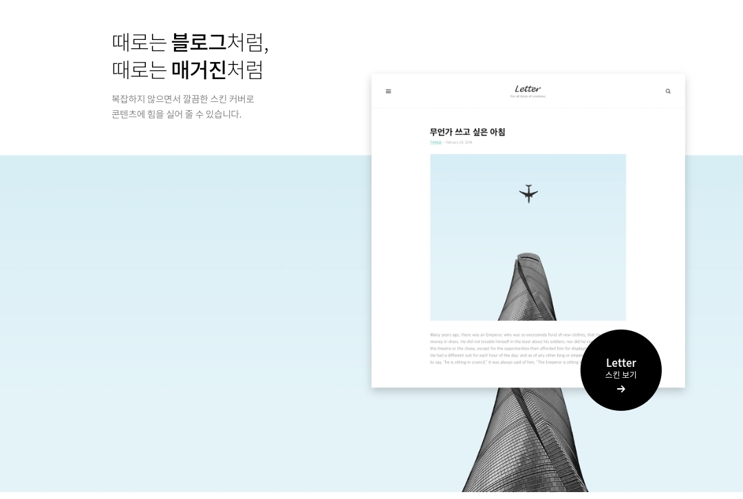 하지만 T 스토리 블로그는 제일 간편하고 세련되게 만들 수 있는 장점이 있다.