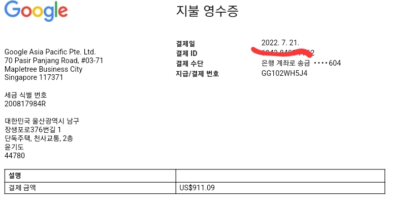 구글에서 매달 21일에 정확하게 입금을 시켜준답니다.