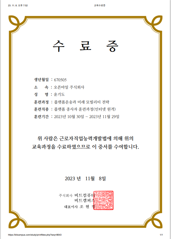 플랫폼운송과 미래 모빌리티 전략 (온라인 교육)