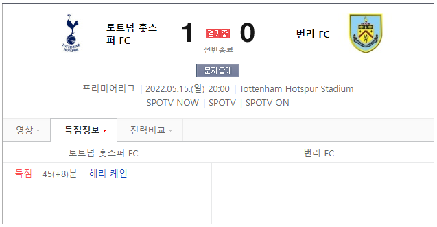자 오늘 경기 토트넘 이 그 강등권목표를 받고 있는 번니를 상대로 전반전 일동을 앞서가고