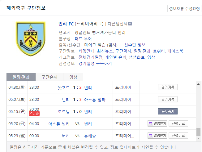 강등권 뭐 프로 지금 번리가 다섯 경기 3승을 이뤄내고 있습니다.