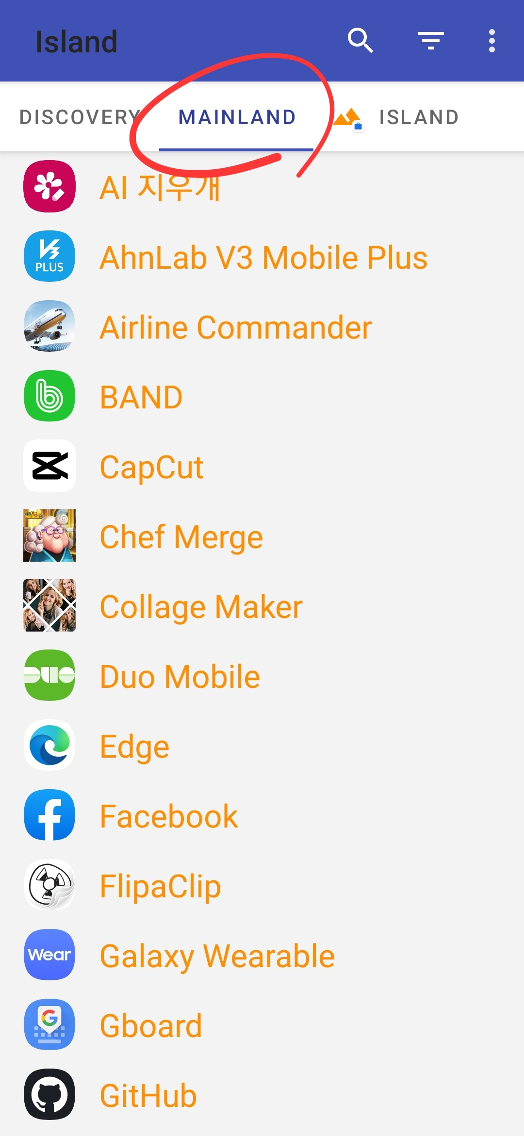 그럼 기존 앱들은 Mainland 폴드에 모두 확인 가능합니다.