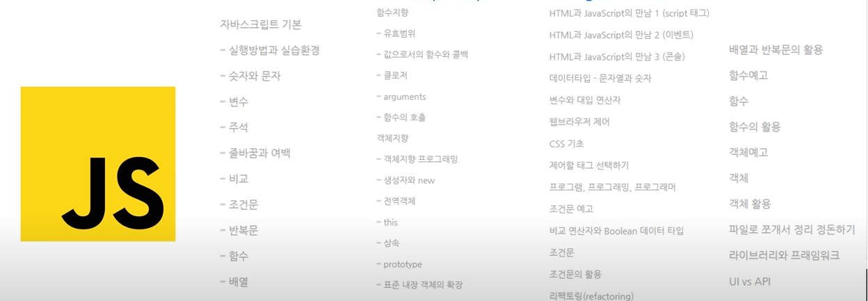 이 번 영상에서 자바스크립트개념 하나하나를 다 다루기에는